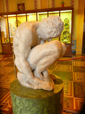 Al penetrar en su interior, la mirada se extasía ante la suntuosidad de sus estancias y corredores, ante la majestad de sus salas, ante el profuso lujo en la decoración de puertas y paredes, en el mobiliario y en las espectaculares lámparas que se distribuyen por doquier, ante la magia misma del recinto. Si bien, las obras de arte que se exhiben reclaman la atención del espectador, los ojos se distraen ante la propia belleza del Ermitage que consigue eclipsar lo que alberga en su interior.